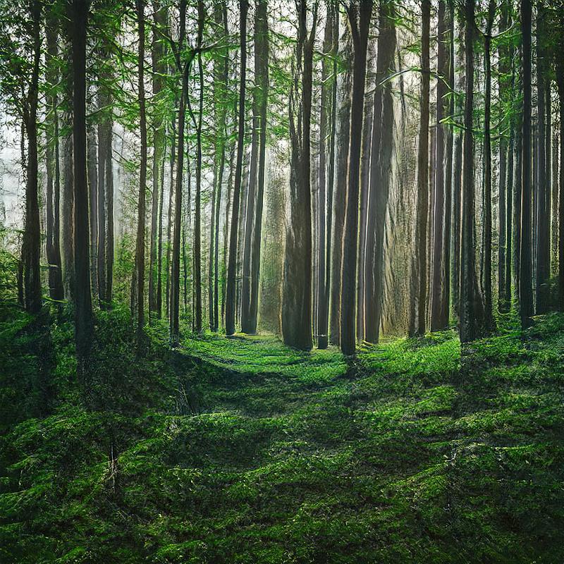 Created by a kind of artificial intelligence called a Generative Adversarial Network via a StyleGAN2 model trained on landscape imagery.