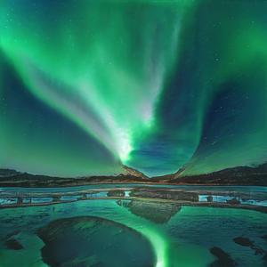 Created by a kind of artificial intelligence called a Generative Adversarial Network via a StyleGAN2 model trained on images of the Aurora Borealis.